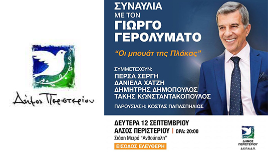 Ενημερωτική εκδήλωση «Φροντίζοντας τα κακοποιημένα - παραμελημένα παιδιά» θα πραγματοποιηθεί τη Δευτέρα 24 Οκτωβρίου 2022, ώρα 18.00 στο Αμφιθέατρο τουΔημαρχιακού Μεγάρου Περιστερίου (πλατεία Δημαρχείου - στάση Μετρό «Περιστέρι»). Είσοδος Ελεύθερη.