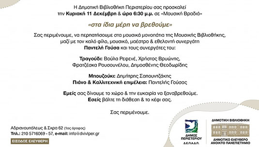 Σας περιμένουμε να περπατήσουμε στα μουσικά μονοπάτια της Μουσικής Βιβλιοθήκης.